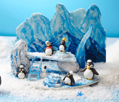 3、亲子合作制作“冰川上的企鹅”创意手工作品;